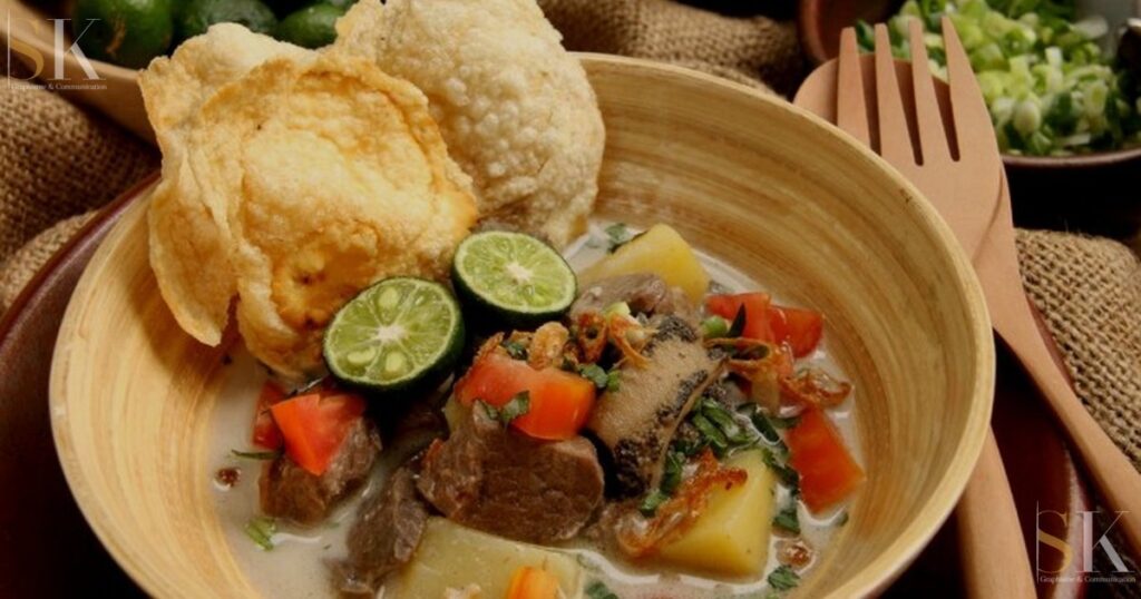 Soto betawi legendaris jakarta Cahaya pagi menari di atas gerobak soto, uap susu dan serai naik berkelip, daging merah jatuh lembut ke sendok, rempah menyeruak, dentang kuali tembaga bergema di…