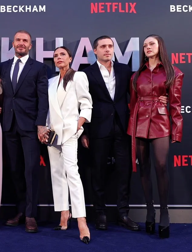 Brooklyn Beckham dan Nicola Peltz, paling kanan, terlihat murung saat pemutaran perdana Netflix David pada tahun 2023