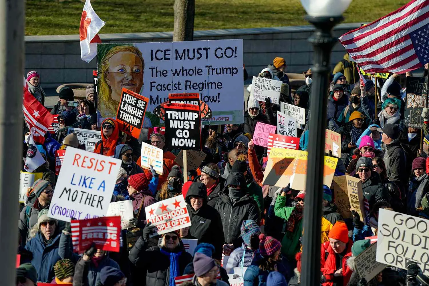 Amerika dari seluruh negeri berpartisipasi dalam Leave the Free United States pada 20 Januari 2026, untuk memprotes presiden Donald Trump dan kebijakan imigrasi agresif pemerintahannya.