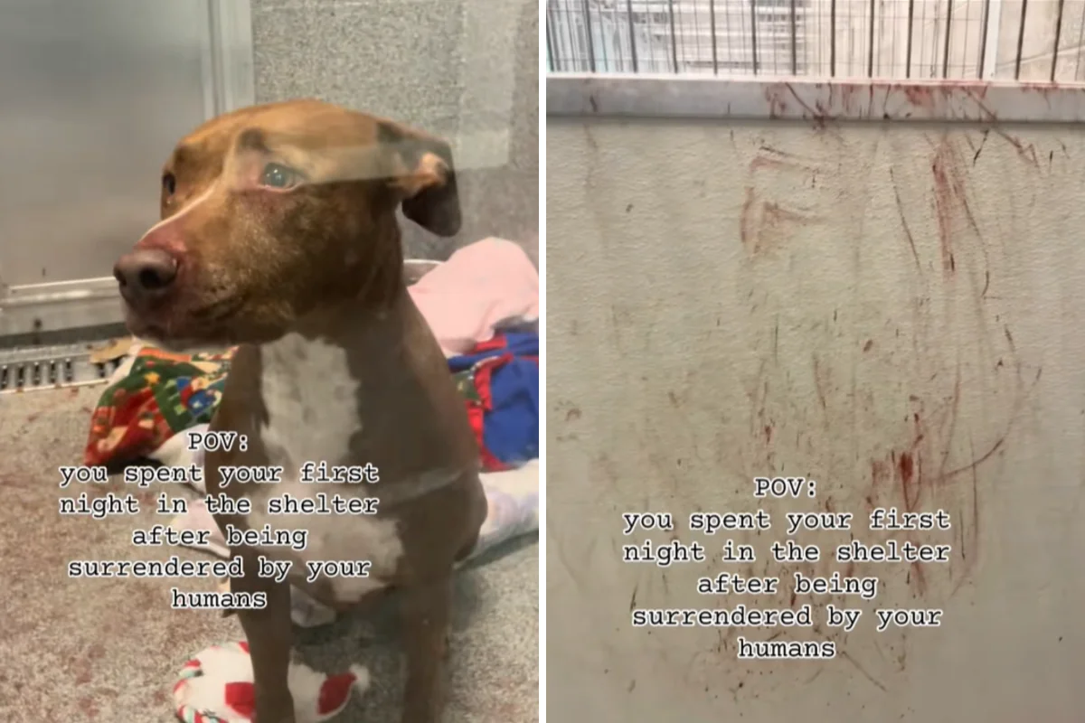 Seorang anjing tampak sangat terguncang setelah dibawa ke tempat penampungan. Namun, tak seorang pun menyangka apa yang akan ditemukan tim di kandangnya keesokan pagi.