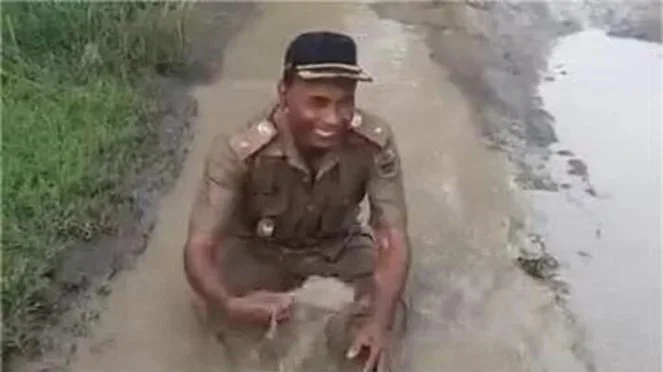 Sragen, VIVA— Sebuah video yang menampilkan Kepala Desa (Kades) Ngepringan, Kecamatan Jenar, Kabupaten Sragen, Jawa Tengah, Sunarso, viral di media sosial. Dalam video clip tersebut, Sunarso terlihat melakukan aksi mandi di kubangan jalan rusak yang dipenuhi air bercampur lumpur.