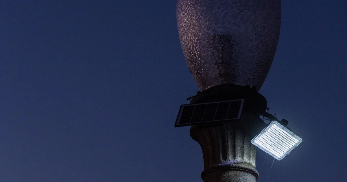 1.Saat ini, ada banyak orang yang ingin menggunakan lampu di jalan Hangout Park, di mana mereka bekerja.2.Lampu surya yang dipasang di lampu jalan yang rusak menyalakan jalan di dekat Jalan Orange di Hancock Park.