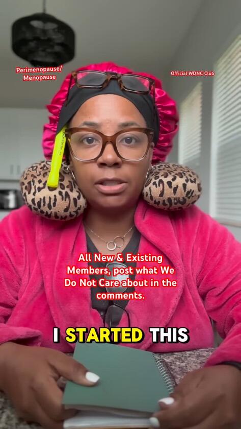 Itu mantra Saunders dalam kehidupan sekarang. Tahun lalu, seorang ibu dari tiga anak, yang tinggal di West Palm Beach, Florida, mendirikan We Do Not Care Club, sebuah komunitas online untuk jutaan wanita di perimenopause, menopause dan postmenopause yang menunjukkan kepada dunia bahwa kita tidak peduli lagi. Video Saunders di media sosial tampak berantakan di kamar mandi dan dengan kacamata membaca, misalnya dengan sepasang kacamata baca ekstra yang tergantung di lapel, sambil menolak komentar anggota tentang apa yang mereka tidak pedulikan lagi.