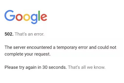 Kecelakaan tersebut tidak hanya terjadi pada degree Argentina saja, dimana jika mencoba melakukan pencarian akan muncul pesan” 502 Error. Web server mendeteksi akesalahan sementaradan tidak dapat menyelesaikan lamaran Anda. Silakan coba lagi dalam 30 detik.Hanya itu yang kami tahu, tapi ada laporan yang datangBrasil, Chili, Peru, Spanyol, dan Amerika Serikatdengan kekurangan yang sama, sehingga tidak menutup kemungkinan sudah mendunia walaupun masih belum ada informasi resmi mengenai hal tersebut.