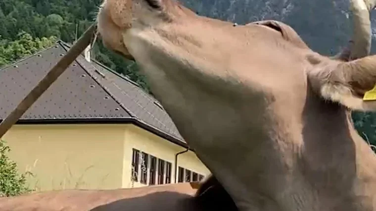 Sapi di Austria menggunakan sapu untuk menggaruk dirinya sendiri21 Januari 2026