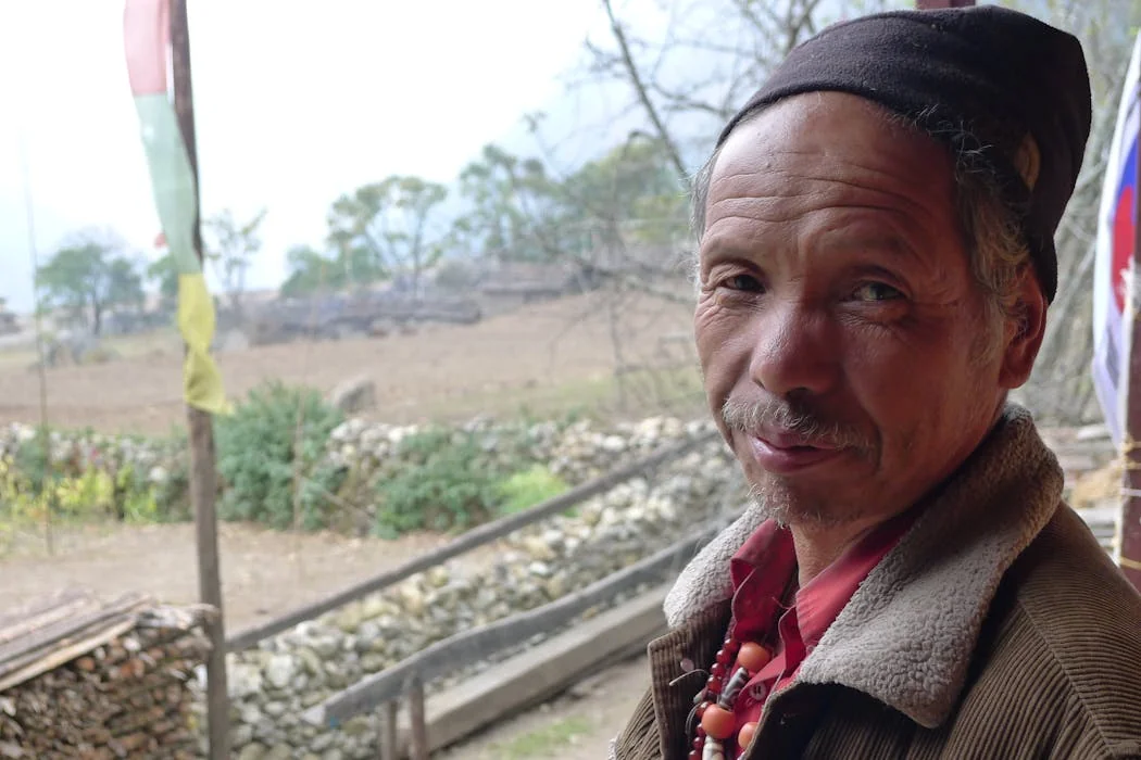 Peneliti Dolma Choekyi Lama, Tsering Tinley dan saya menginterview Dorje, seorang warga Nubri, sebuah daerah Buddha di Pegunungan Nepal, 71 tahun, sebagai bagian dari penelitian tiga tahun tentang penuaan dan migrasi.
