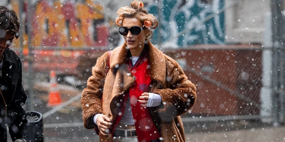 Model ini terlihat pada Senin (19 Januari) di sebuah sesi foto di New York City di tengah-tengah ledakan salju.