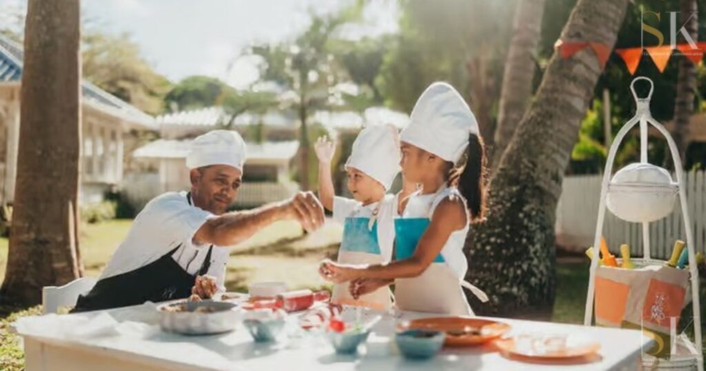 Handuk berjejer di kursi anyaman, ayah ibu tersenyum sambil mencicipi es kelapa muda. Remaja berlomba meluncur, balita mengepal balok pelampung berwarna cerah. Kehangatan percakapan tetangga berpadu tawa, membuat waktu terasa berjalan pelan, mengajak tamu kembali keesokan hari.